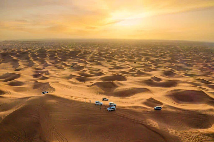 Por la tarde, salida en vehículos 4×4 hacia el desierto para vivir una experiencia familiar inolvidable: paseo por las dunas, cena barbacoa bajo las estrellas, espectáculos tradicionales y actividades para niños.
