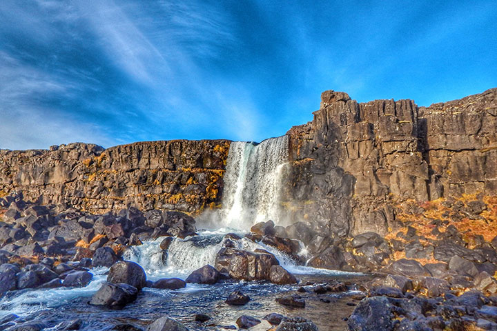 Salida en vuelo regular con destino Reykjavík. Llegada a Islandia y traslado en Flybus+ hasta el hotel en Reykjavik, donde pasarás la primera noche.Día 2 Triángulo dorado. PN de Þíngvellir, Geysir y Gullfoss