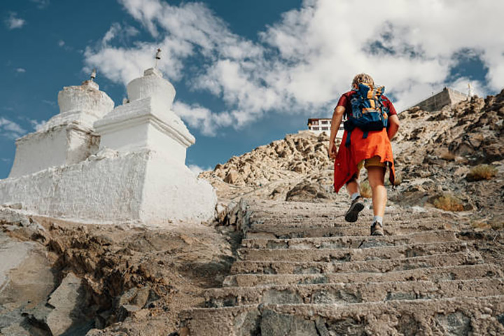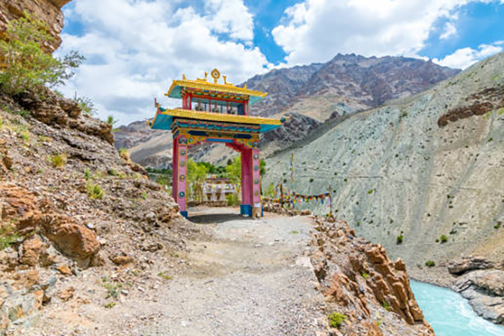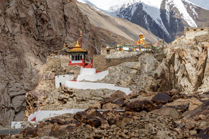 En ruta visitaremos el Monasterio de Stakna, fundado a finales del siglo XVI por el erudito y santo butanés Chosje Modzin. El nombre significa “nariz de tigre”, ya que el monasterio está construido sobre una colina con esa forma. Alberga una estatua sagrada de Arya Avalokitesvara procedente de Assam.